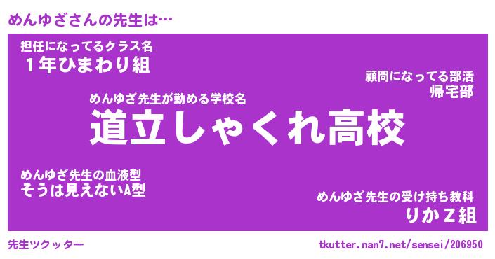 意味不明あだ名 | 『ペロリンめんゆざ』『永久保存めんゆざ』 |