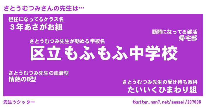 肩書あだ名 | 『さとうむつみ店長』『さとうむつみ班長』 |