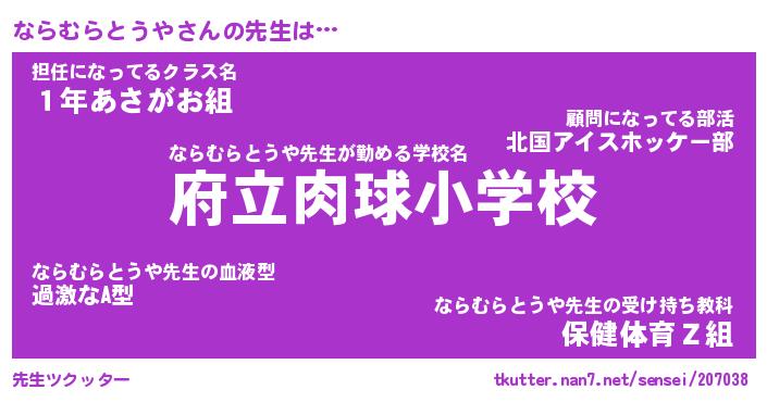 伝説のあだ名 | 『封印されし傭兵ならむらとうや』 |
