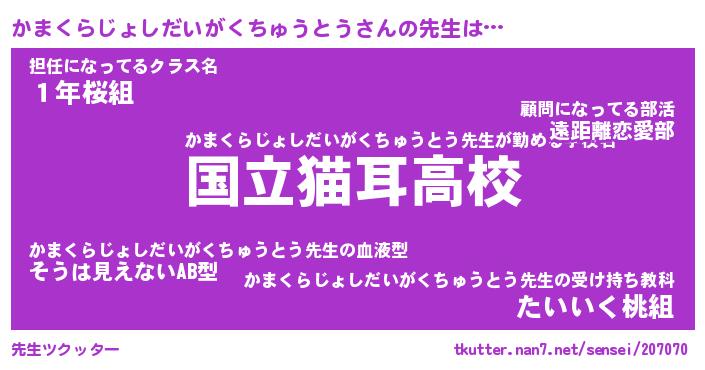 | 意味不明あだ名 | 『ペロリンかまくらじょしだいがくちゅうとう』 |