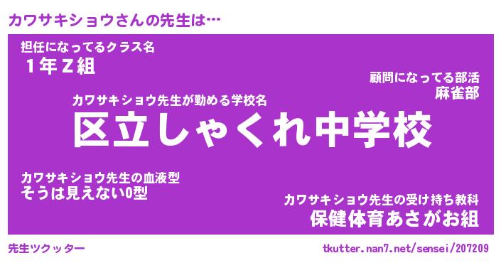 | 伝説のあだ名 | 『封印されしスナイパーカワサキショウ』 |