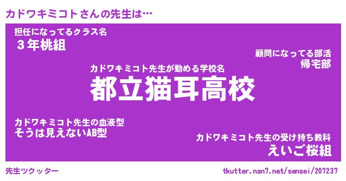 | 肩書あだ名 | 『カドワキミコト社長』 |