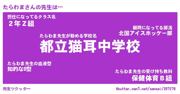 意味不明あだ名 | 『ペロリンたらわま』『永久保存たらわま』 |