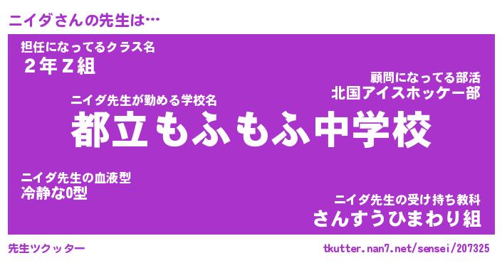 ヘコむあだ名 | 『ニイにゅー』『なまこ酢』 |