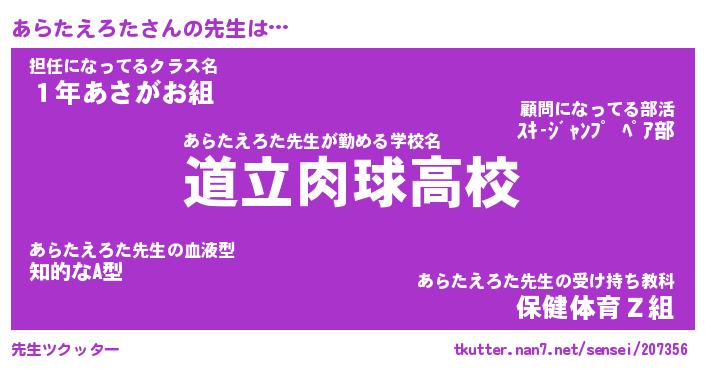 | ヘコむあだ名 | 『あらふぇ~』『牛乳』『あら太郎』 |