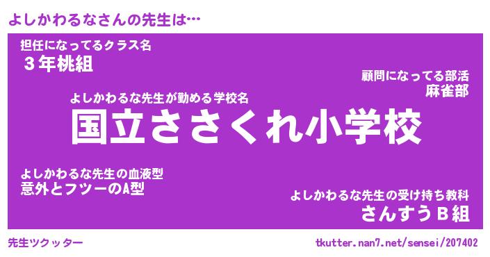 | 伝説のあだ名 | 『伝説のスナイパーよしかわるな』 |