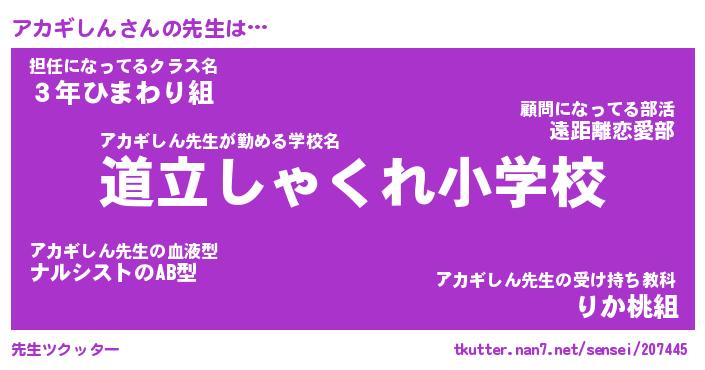 | 肩書あだ名 | 『アカギしん御曹司』『アカギしん大統領』 |