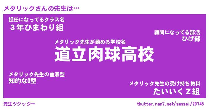 | ファンタジー風あだ名 | 『メタフェル』『エターナルメタリックー』 |
