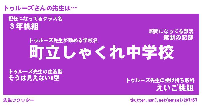 | ポケモン風あだ名 | 『トゥチュウ』『トゥルダネ』 |