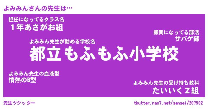 | 意味不明あだ名 | 『ペロリンよみみん』『永久保存よみみん』 |