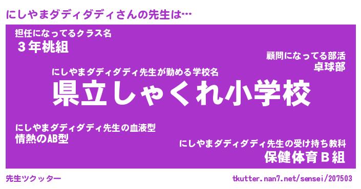 | 意味不明あだ名 | 『ペロリンにしやまダディダディ』 |