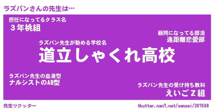 | 意味不明あだ名 | 『ペロリンラズバン』『永久保存ラズバン』 |