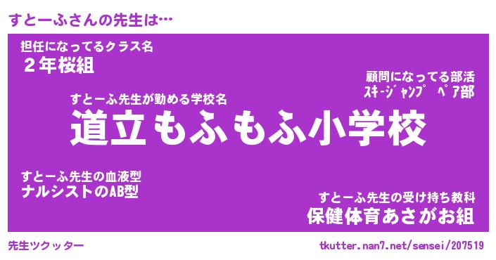 | 肩書あだ名 | 『すとーふ店長』『すとーふ国家主席』 |