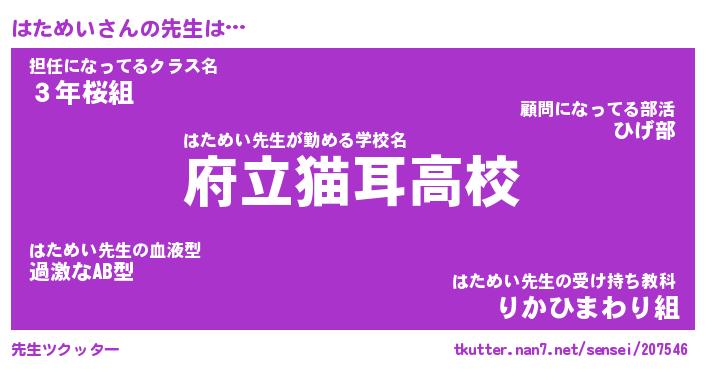 | 意味不明あだ名 | 『ペロリンはためい』『永久保存はためい』 |