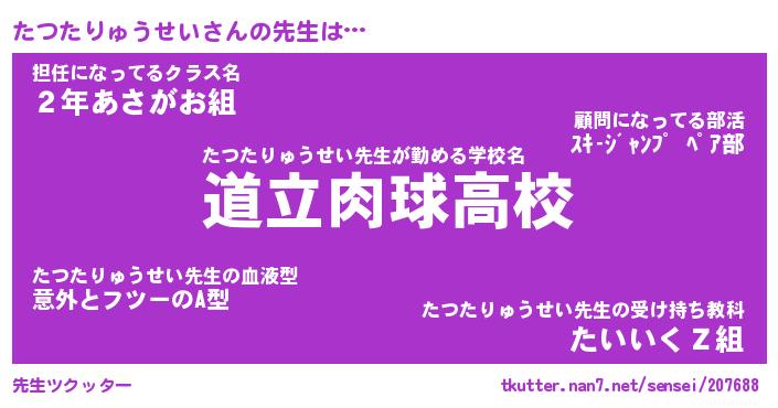 | ピコ太郎風あだ名 | 『タコ一郎』『ピタ四郎』『タツ三郎』 |
