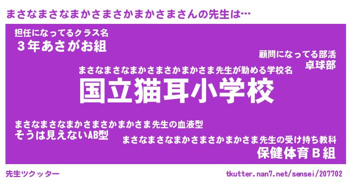 | 猫 | 猫の名前『まさなまさなまかさまさかまかさまにゃん』 |