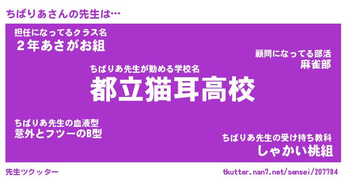 | 意味不明あだ名 | 『ペロリンちばりあ』『永久保存ちばりあ』 |