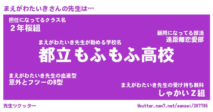 | ヘコむあだ名 | 『まえにゅー』『酢こんぶ』 |