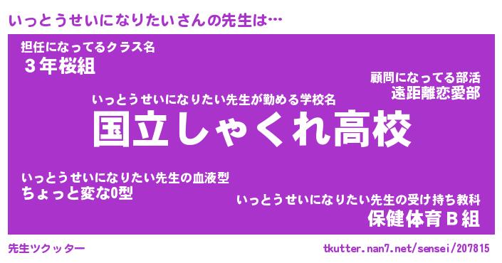 | 伝説のあだ名 | 『伝説のスナイパーいっとうせいになりたい』 |