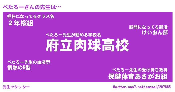 | 意味不明あだ名 | 『ペロリンぺたろー』『永久保存ぺたろー』 |