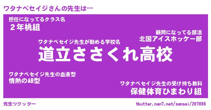| 恥ずかしいあだ名 | 『プリティーワタナベセイジ』『ワタちん』 |