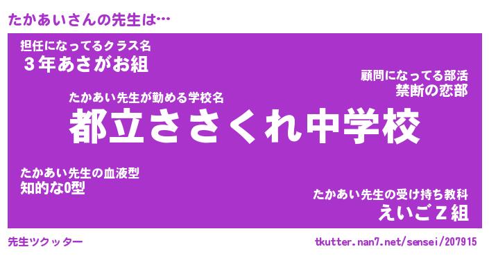 | ファンタジー風あだ名 | 『タカフェル』『エターナルタカアイー』 |