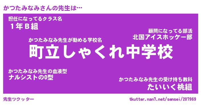 | ヘコむあだ名 | 『かつっふぃ~』『つくし』『かつを』 |