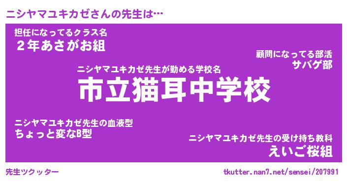 | 肩書あだ名 | 『ニシヤマユキカゼ社長』 |