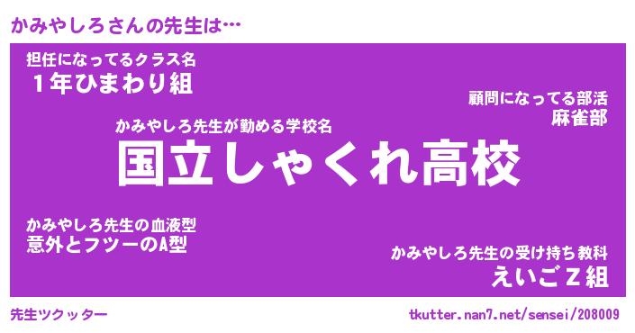 | ファンタジー風あだ名 | 『カミフェル』『エターナルカミヤシロー』 |