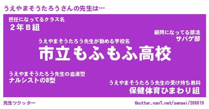 | ピコ太郎風あだ名 | 『ウコ四郎』『ピウ太郎』『ウエ史郎』 |
