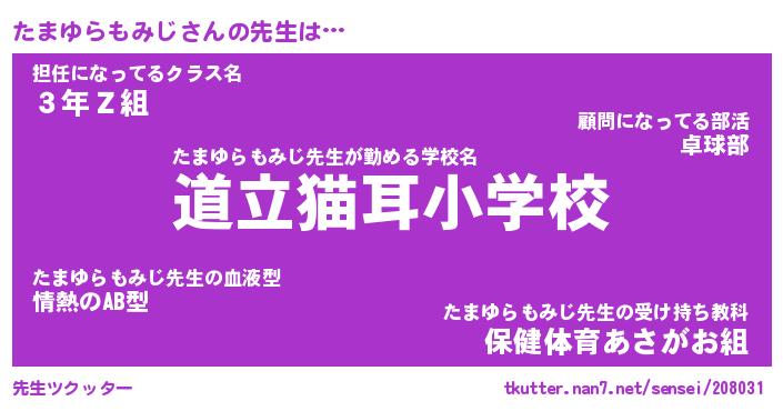 | 恥ずかしいあだ名 | 『プリティーたまゆらもみじ』『たまちん』 |
