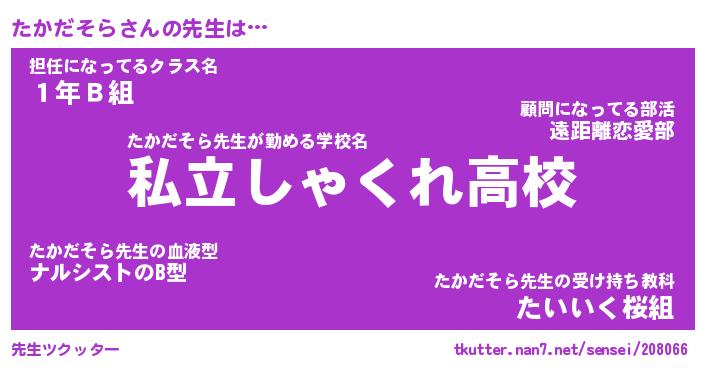 | 肩書あだ名 | 『たかだそら御曹司』『たかだそら校長』 |