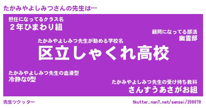 | 肩書あだ名 | 『たかみやよしみつ御曹司』 |