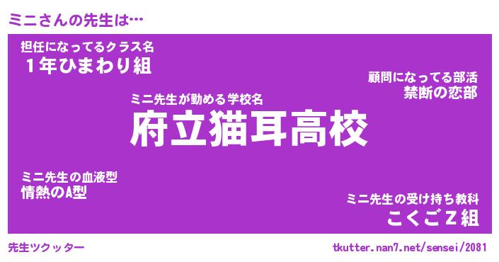 | 意味不明あだ名 | 『ペロリンミニ』『ミニフォーエバー』 |