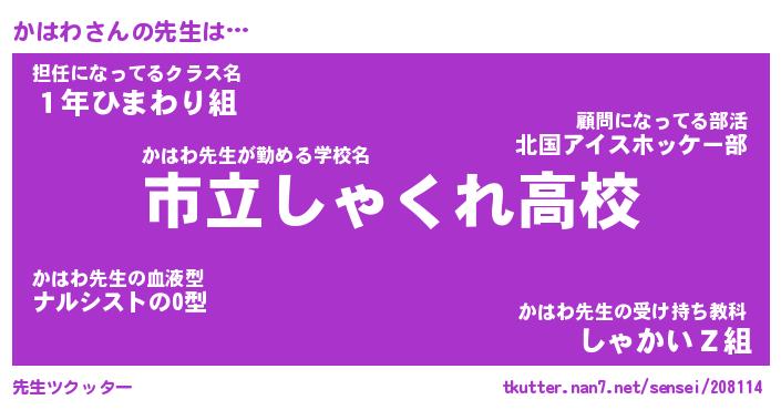 | ヘコむあだ名 | 『かはっふぃ~』『つくし』『かはを』 |
