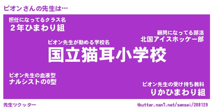 | ヘコむあだ名 | 『ピオにー』『なまこ酢』『ピオっ子』 |