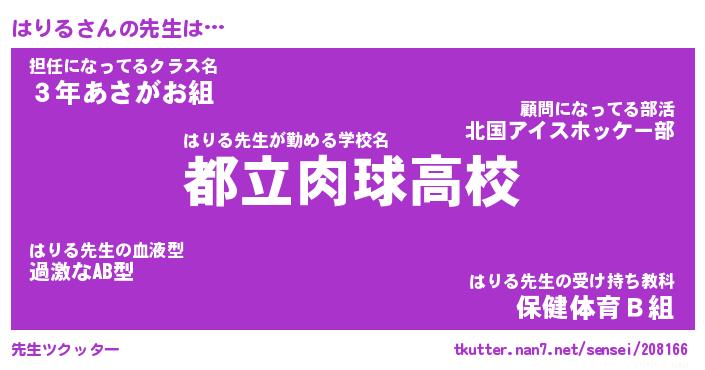 | ヘコむあだ名 | 『はりふぇ~』『酢こんぶ』『はりを』 |