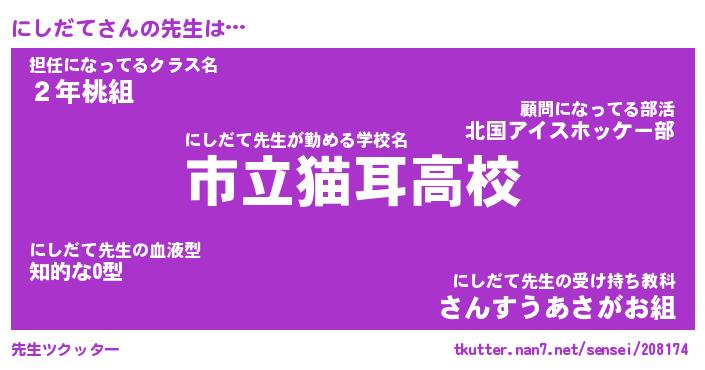 | 意味不明あだ名 | 『ペロリンにしだて』『永久保存にしだて』 |
