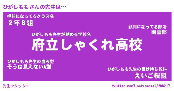 | ファンタジー風あだ名 | 『ヒガフェル』『エターナルヒガシモモー』 |