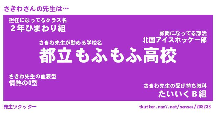 | ヘコむあだ名 | 『さきにゅー』『なまこ酢』 |