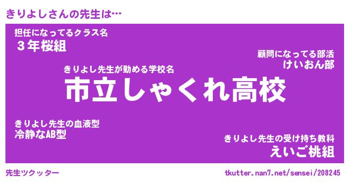 | ファンタジー風あだ名 | 『キリフェル』『エターナルキリヨシー』 |