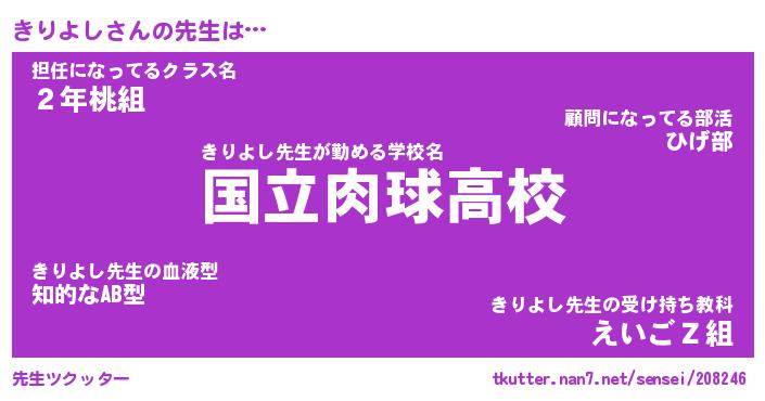 | 意味不明あだ名 | 『ペロリンきりよし』『永久保存きりよし』 |