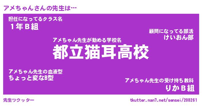 | ファンタジー風あだ名 | 『アメフェル』『エターナルアメチャンー』 |