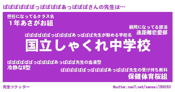 | 胡散臭い通販商品みたいなあだ名 | 『必ず成功する霊験あらたかなお札…その名も「ぱぱぱぱぱぱっぱぱぱぱあっぱぱぱ」』 |