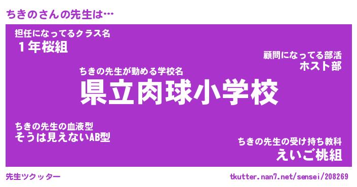 | ヘコむあだ名 | 『ちきふぇ~』『豆乳』『ちきぷりん』 |