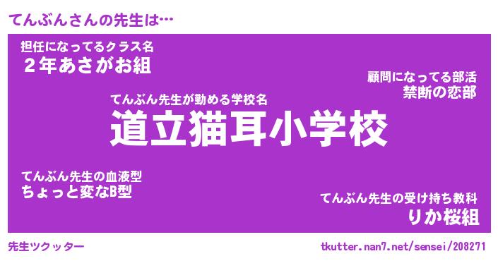 | 意味不明あだ名 | 『ペロリンてんぶん』『永久保存てんぶん』 |