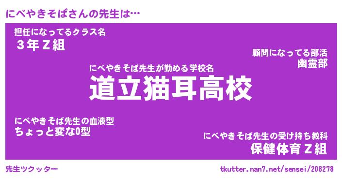 | 肩書あだ名 | 『にべやきそば社長』『にべやきそば班長』 |