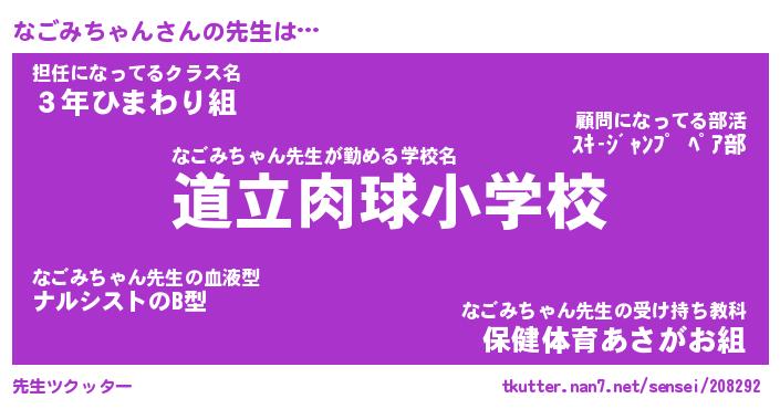 | 恥ずかしいあだ名 | 『プリティーなごみちゃん』『なごっちょ』 |