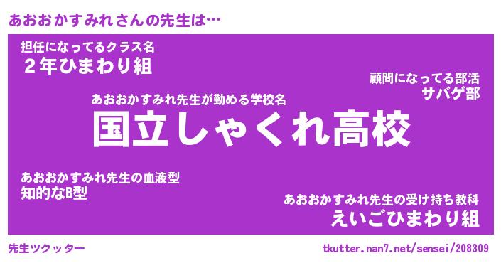 | 胡散臭い通販商品みたいなあだ名 | 『必ず成功する霊験あらたかなお札…その名も「あおおかすみれ」』 |