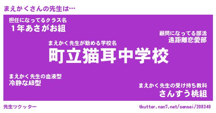 | 意味不明あだ名 | 『ペロリンまえかく』『永久保存まえかく』 |